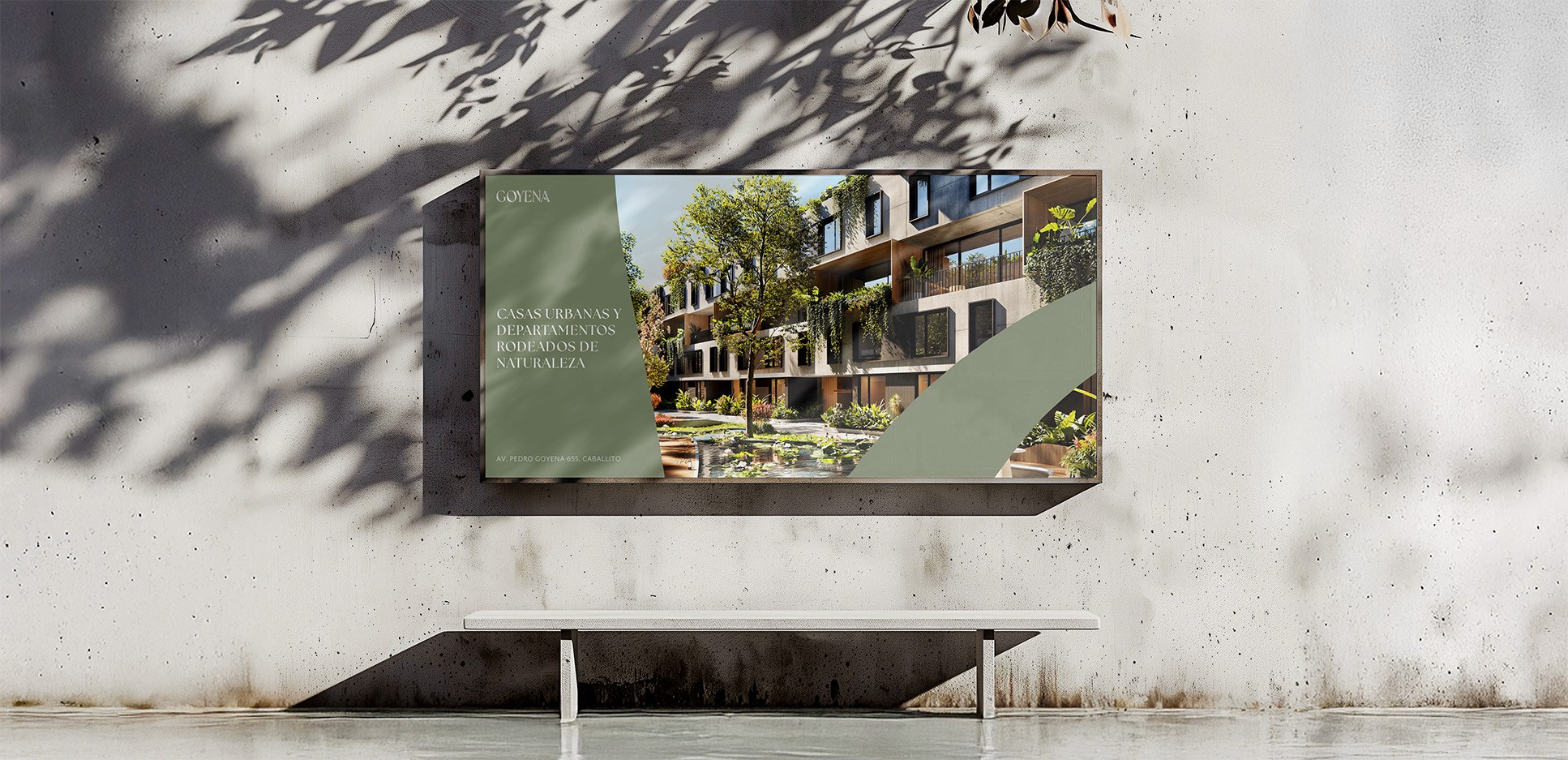 Un proyecto rodeado de naturaleza y vistas abiertas, ubicado en una zona que invita al relax y la conexión con el entorno. Desde FORMA trabajamos integralmente en el desarrollo de su identidad visual y comunicación: nos encargamos del branding, el brochure comercial, la cartelería, una landing page orientada a la conversión y el diseño de contenidos para redes sociales y campañas de pauta digital. La paleta de verdes y celestes que guía todo el universo visual refleja el espíritu del lugar: amplitud, naturaleza y tranquilidad. Además, llevamos adelante el interiorismo de los espacios comunes, alineando estética y funcionalidad para potenciar la experiencia del habitar.